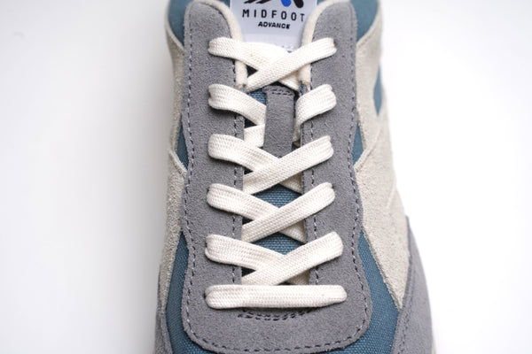 スリムなシルエットのスニーカーにするため、BASIS用に開発しました。ウィズ(足囲)は E です。EVERYと比べると少しタイトですが、アッパー素材が柔軟であるため2Eの方でも楽々履いていただけます。ミッドフットは、革靴のサイズ規格ですが、BASISのサイズ選びは他社のスニーカーサイズより1つ下のサイズ選びがベターです。