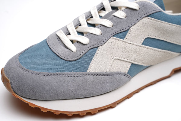 ボディには国産のキャンバス生地を使用、太めにあしらったMFマークやつま先、踵など補強パーツには牛革スエードを使っております。シンプルなデザインで、綺麗めのファッションにも相性がよくなっております。